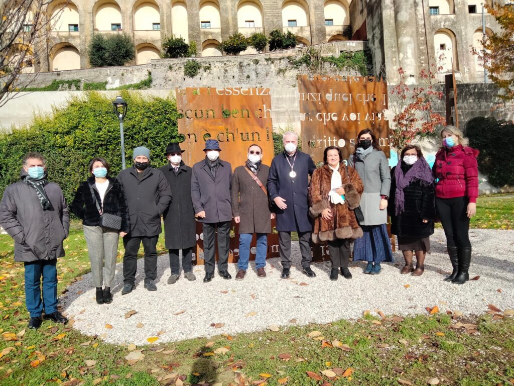 Il Comune di Baronissi ricorda il settecentenario della morte del Sommo Poeta con “dante700”, l’installazione realizzata dall’artista Girolamo Santulli al Parco del Ciliegio. L’opera è stata ‘svelata’ questa mattina dal sindaco Gianfranco Valiante. L’artista si è lasciato ispirare dal vorticoso percorso della Divina commedia come un libro a pagine spiegate, con citazioni estetiche provenienti dall’arte moderna e contemporanea. L’installazione, composta da tre lastre verticali in metallo corten, gioca con i pieni e i vuoti e si può attraversare. Sulla prima lastra il volto del poeta. Sulle altre sono stati incisi versi del Poeta che diventano immagine. A firmare l’opera, l’artista Girolamo Santulli, laureato all’Accademia di Belle Arti di Napoli, che vive e lavora a Baronissi. L’opera di eccezionale valenza ha preso forma in un luogo simbolo della cultura, a pochi passi dal Museo Frac, nel Parco del Ciliegio che diventa così Giardino dell’arte. All’inaugurazione hanno partecipato il vicesindaco e assessore alla cultura Anna Petta, l’assessore Picarone, i consiglieri comunali Angela De Divitiis, Elisa Galdi, Luisa Genovese, Enzo Melchiorre, il direttore del Museo Frac Massimo Bignardi (e presidente della Commissione del Concorso di idee bandito dal Comune), la presidente della società Dante Alighieri Pina Basile. Versi della Divina Commedia sono stati declamati dalle studentesse della classe quinta della scuola San Francesco Benedetta Karol Donnarumma e Lucia Senatore. Una bella giornata per la nostra città.