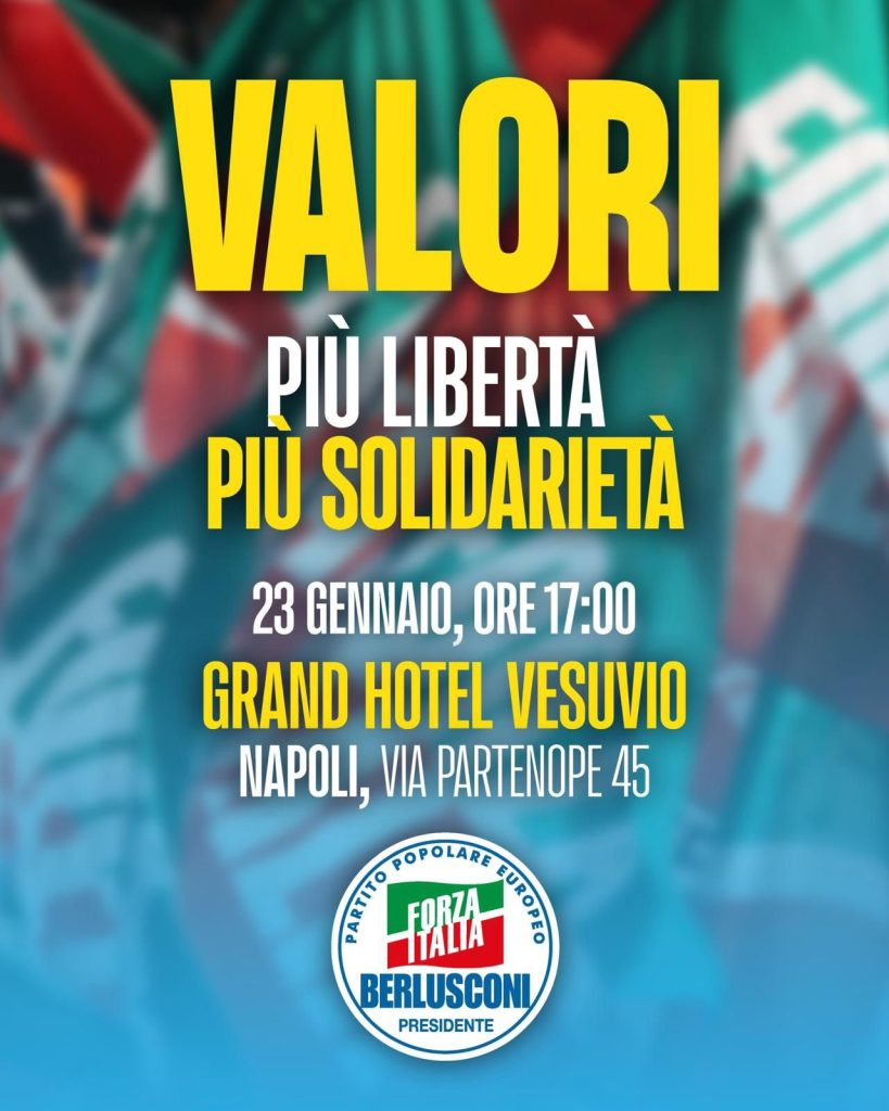 L’appuntamento è a Napoli, come anche a Roma e Milano, il prossimo 23 Gennaio, per ricordare, a tutti i sostenitori di Forza Italia, la discesa in politica di Silvio Berlusconi, avvenuta, esattamente, 32 anni anni fa. Per la Campania, ma in generale per tutto il Sud Italia, l’appuntamento è all’Hotel Vesuvio per un evento molto sentito all’interno del partito degli azzurri.