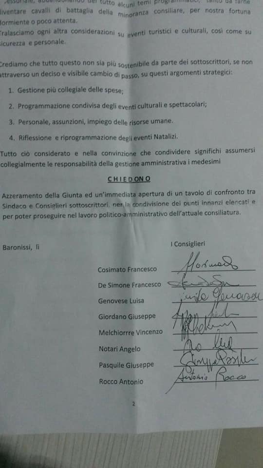 Dopo lo scomodo documento che, all’inizio del 2018, i consiglieri di maggioranza firmarono contro le scelte del sindaco Valiante, soprattutto in materia di nomine degli assessori, pare che a Baronissi, proprio in questi giorni, stia circolando un secondo atto di carattere politico, con il quale pezzi della maggioranza intendono prendere le distanze dallo stesso Valiante, in vista delle elezioni comunali della prossima primavera.