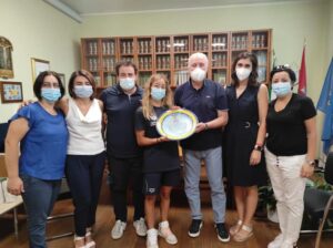Visita in Comune questa mattina per la giovanissima nuotatrice Federica Senatore, prima italiana classificata e quinta migliore europea sulla distanza di 7,5 km in acque libere ai campionati Europei di Parigi per la categoria 2004/2005. Il sindaco Gianfranco Valiante ha donato alla giovane campionessa di Baronissi, un’opera ceramica realizzata dal maestro Enzo Bianco. Prossimo obiettivo, i campionati mondiali in Russia.