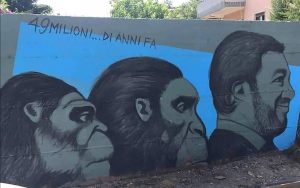 Realizzato nell’ambito di una manifestazione che, ogni anni, si tiene a Baronissi, con il patrocinio del Comune, il murales che ritrae una sorta di evoluzione dell’uomo, partendo da 49 milioni di anni fa – con una chiara allusione ai fondi che la Lega deve restituire – e con un’ultima immagine che ricorda l’attuale Ministro dell’Interno Matteo Salvini, è destinato a diventare un caso politico. E forse giuridico.