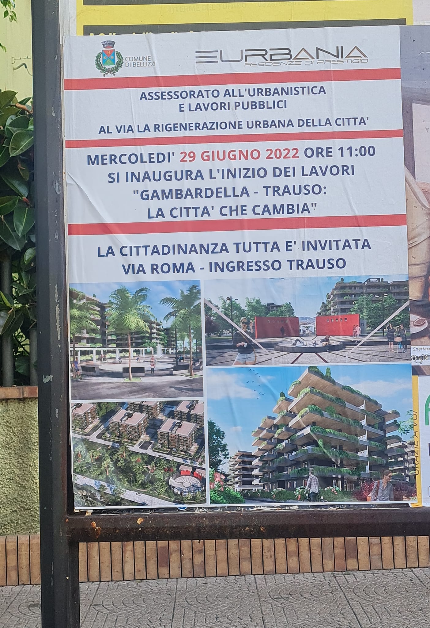“Sono sincero, pensavo che un’agenzia immobiliare nell’espletare il proprio lavoro stesse pubblicizzando nuovi interventi edilizi, invece noto che è un manifesto del comune che inaugurerà l’apertura di cantieri privati per costruire palazzi!!! Abbiamo toccato il fondo, dopo la svendita dei terreni comunali per fare “cemento”, oggi addirittura vogliono far passare altri palazzoni come un intervento di “opere” pubbliche!”