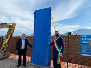 Al via i lavori per la rifunzionalizzazione di via Magna Grecia. Alla cerimonia di posa della prima pietra, svoltasi stamattina in rispetto di tutte le normative anti Covid-19, hanno preso parte il sindaco di Capaccio Paestum, Franco Alfieri, e il consigliere regionale Luca Cascone, già presidente della Commissione Trasporti.