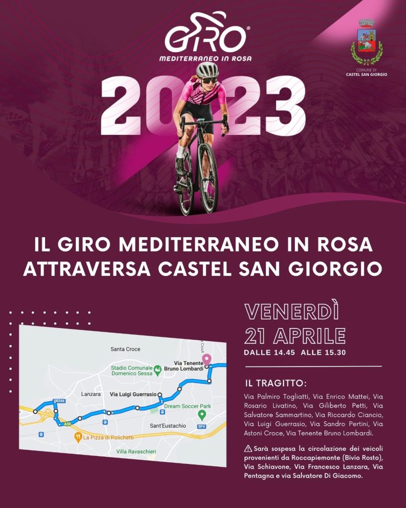 Anche Castel San Giorgio si tinge di rosa. Venerdì 21 aprile la città sarà attraversata, per circa 6 km,dalla prima tappa del “Giro Mediterraneo in Rosa”, una delle più importanti competizioni femminili in bicicletta.