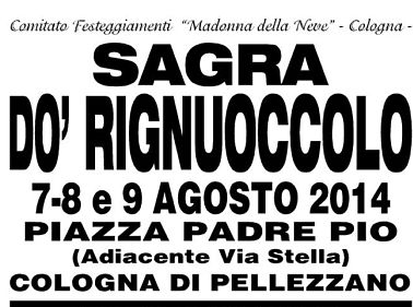 SAGRA DEL RIGNUOCCOLO. OGGI EVENTI A COLOGNA, DOMANI LA PROCESSIONE DELLA MADONNA DELLE NEVE
