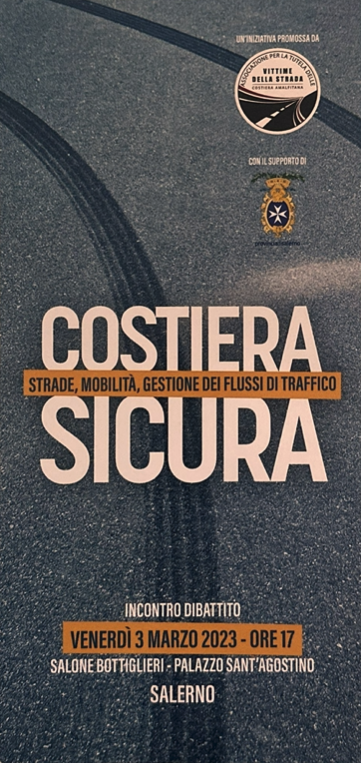 Si terrà domani Venerdì 3 Marzo alle 17.00 presso il Salone Bottiglieri di Palazzo Sant’Agostino a Via Roma “Costiera Sicura – Strade, mobilità, gestione dei flussi di traffico”, incontro sulla sicurezza stradale, promosso su impulso dell’Associazione per la Tutela delle vittime della strada Costiera…