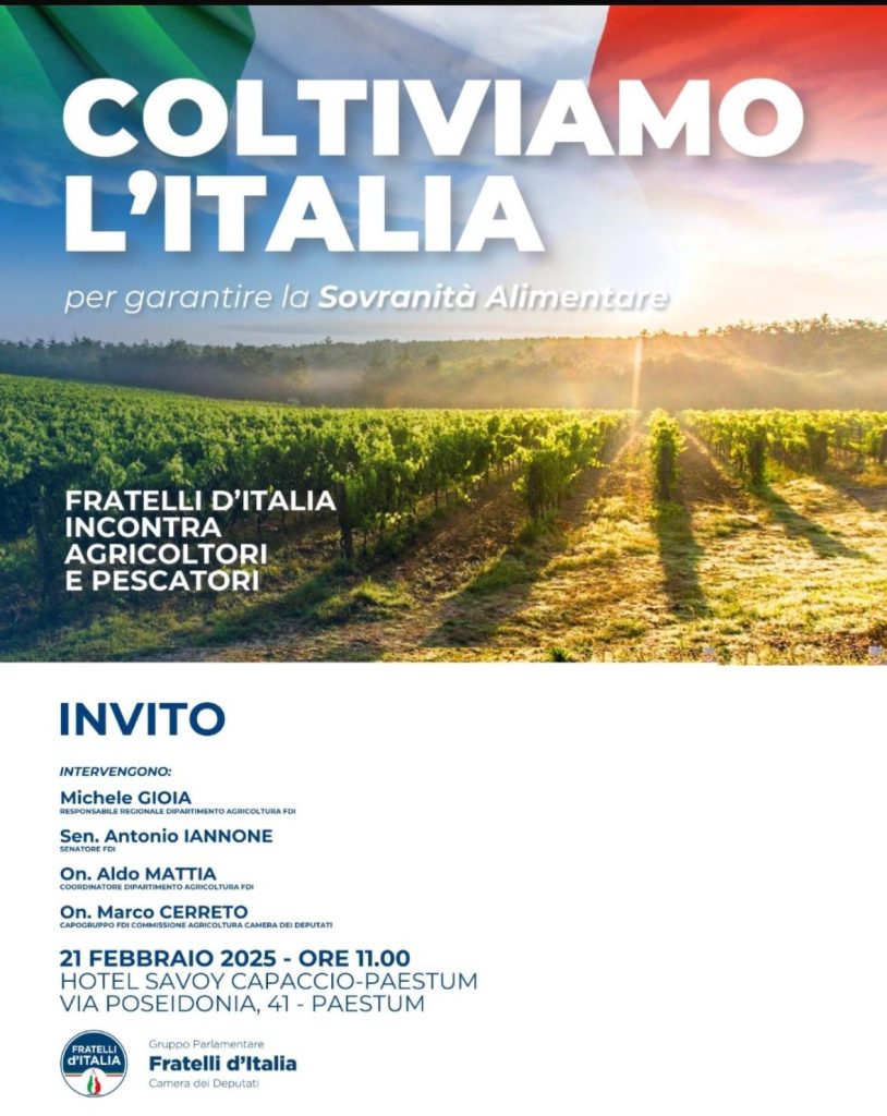 COLTIVIAMO L’ITALIA, L’INIZIATIVA DI FRATELLI D’ITALIA A CAPACCIO PAESTUM VENERDI’ 21 FEBBRAIO