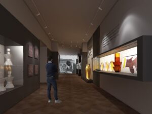 Le ampie sale espositive ospiteranno opere ceramiche attraverso acquisizioni e donazioni, come la collezione di Linda Burkhardt, ma anche di altri grandi artisti del XX secolo, dei centri di antica tradizione dell’Italia meridionale. Documentazione, conservazione e promozione della storia dello sviluppo industriale e artigianale della ceramica cavese, laboratori, formazione e catalogazione e conservazione di progetti, prototipi o di quanto prodotto da artisti contemporanei.
