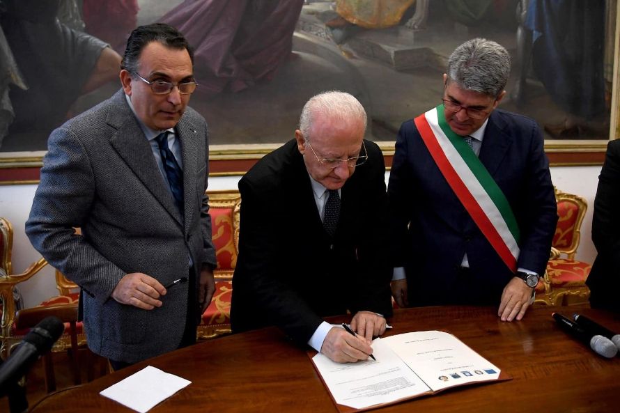Sottoscritto stamattina nella Sala di Rappresentanza del Palazzo di Città, dal Presidente della Giunta Regionale Vincenzo De Luca e dal Sindaco Vincenzo De Luca, il decreto di assegnazione definitivo del finanziamento di11.197.384,56 euro, del Programma Integrato Città Sostenibili, (P.I.C.S.), finanziato con i fondi P.O. Fesr 2014-2020.