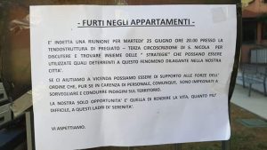 I cittadini di Cava de’ Tirreni, stanchi dei numerosi e continui furti all’interno degli appartamenti, delusi dalle politiche di sicurezza portate avanti dall’amministrazione comunale ed in modo particolare dall’assessore alla sicurezza Del Vecchio, hanno convocato una prima riunione per organizzare un sistema di controllo del territorio autogestito.