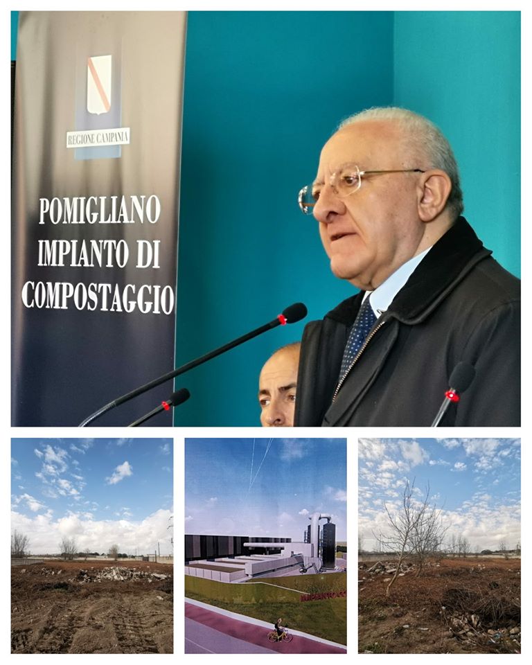 Il Presidente della Regione Campania Vincenzo De Luca, oggi a Pomigliano, in provincia di Napoli, per l’avvio di un nuovo impianto di compostaggio, è tornato a rilanciare la sfida della Regione sul delicato tema delle Ecoballe, ancora presenti su numerosi siti del territorio campano. Oggi è stato avviato il cantiere per l’impianto di compostaggio a Pomigliano d’Arco e proprio dal comune natìo del leader del Movimento 5 Stelle Luigi Di Maio, De Luca, nel corso del suo intervento pubblico, ha ribadito che “in un anno e mezzo verranno eliminate tutte le ecoballe presenti nei diversi siti della Campania”.