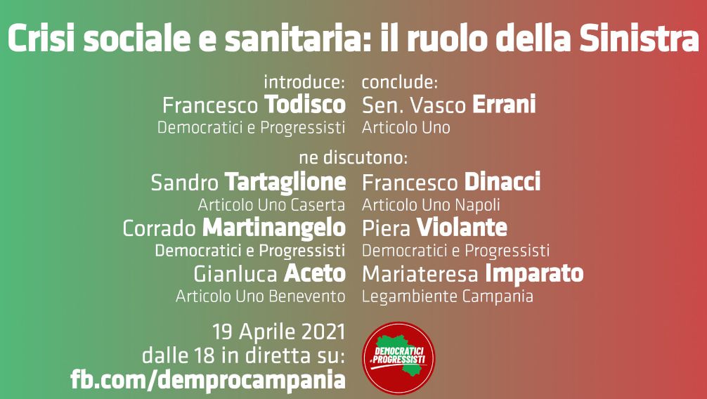 Ci vedremo, necessariamente, da remoto (arriverà il tempo in cui la politica si riapproprierà dell’incontro e della presenza fisica) su questa pagina: fb.com/demprocampania.