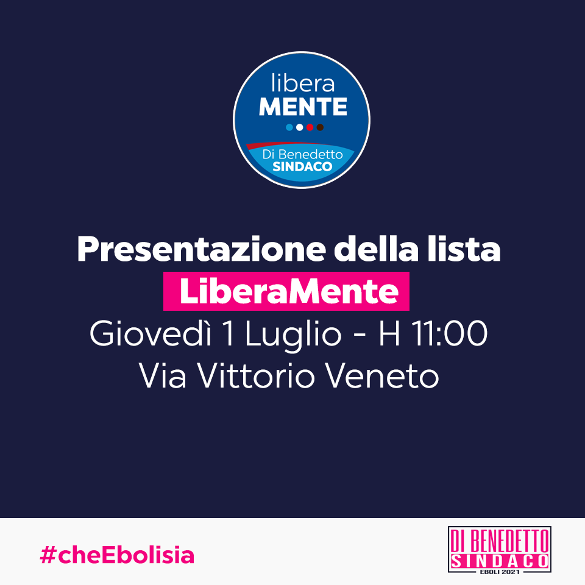 Giovedì 1 luglio alle ore 11.00, presentazione della lista LiberaMente, a sostegno della candidatura di Cosimo Pio Di Benedetto a sindaco di Eboli.