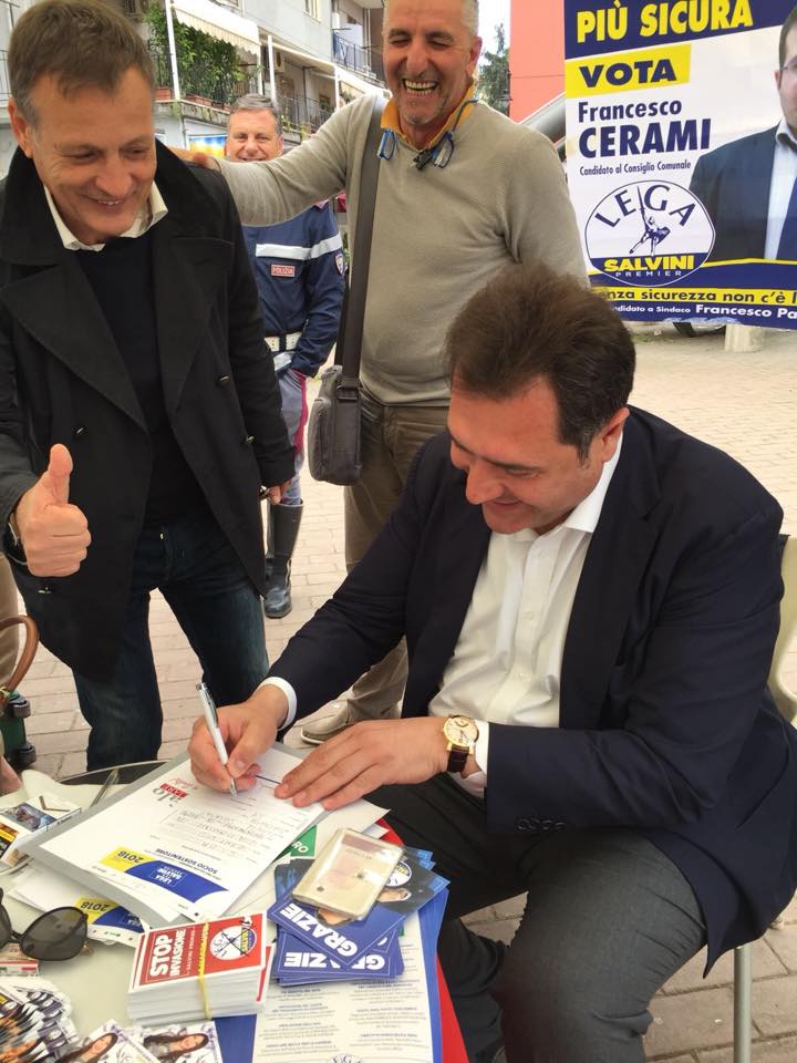 C’è la foto: altro che indiscreto giornalistico. Il Sindaco di Pontecagnano Faiano Ernesto Sica, questa mattina, in Piazza, ha sottoscritto la sua tessera di adesione alla Lega di Matteo Salvini. Sica, che già da qualche settimana dialogava con il Coordinatore Provinciale Mariano Falcone, ha deciso di aderire alla Lega proprio alla vigilia della scadenza per la presentazione delle liste in vista delle comunali del prossimo 10 giugno.