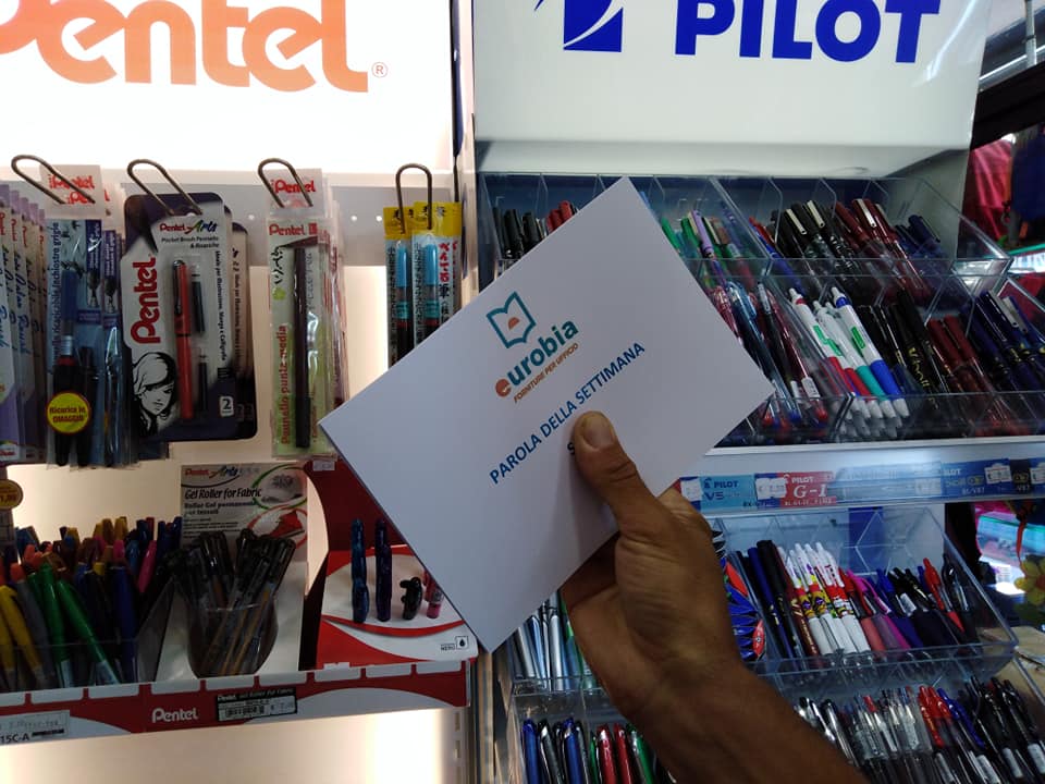 A tutti coloro i quali si recheranno nei negozi EUROBIA di Salerno e di Mercato San Severino, muniti di smartphone per dimostrare di aver ascoltato la PAROLA DELLA SETTIMANA, sarà consegnato un simpatico omaggio ma verrà anche riconosciuto uno sconto del 10% per le spese scolastiche superiori ai 50 euro (fatta eccezione per i diari scolastici).