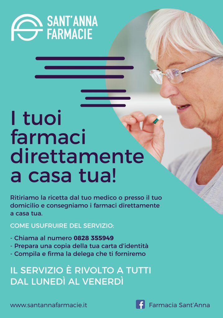 Prende ufficialmente il via il nuovo servizio di consegna a domicilio dei farmaci messo a punto dalla Farmacia Sant’Anna di Bellizzi. Nell’ottica di una costante attenzione alle esigenze del cliente, il servizio è pensato e strutturato per rispondere al bisogno di quanti sono impossibilitati a recarsi in farmacia per ottenere i farmaci di cui necessitano. In primis, ma non solo, la consegna a domicilio è rivolta ad anziani e allettati, le cui condizioni fisiche impediscono loro di andare dal proprio medico di base per ricevere una prescrizione e/o in farmacia per acquistare i farmaci prescritti.