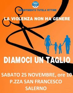 In occasione della Giornata Internazionale contro la violenza sulle donne, il Dipartimento Tutela Vittime di Fratelli d’Italia-An Campania, guidato da Imma Vietri, partecipa alla campagna nazionale del partito “Prima le persone”. Sabato 25 novembre, a partire dalle 10.00, a Salerno presso P.zza San Francesco (nei pressi del Liceo Classico “Torquato Tasso”), ci sarà un flash mob, con il lancio di palloncini arancioni da parte di uomini e donne che si incrociano e mischiano tra loro, seguito dal taglio congiunto e simbolico di un nastro arancione da parte di un uomo e una donna.