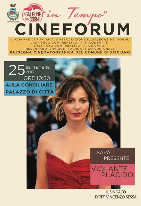 Lunedì 25 settembre alle ore 10.30 , nell’Aula Consiliare di Palazzo di Città, ospiteremo la regista ed attrice Violante Placido nell’ambito della presentazione del progetto didattico culturale “Rassegna Cinematografica” proposta dall’associazione Il Galeone dei Sogni. Il progetto prevede la riproduzione di sette grandi film dell’ultima stagione cinematografica, nei locali scolastici messi a disposizione dalle Dirigenti degli Istituti scolastici Comprensivi di Fisciano e Lancusi, ad ingresso gratuito. La proiezione verrà effettuata il 15 e 16 di ogni mese a partire dal mese di ottobre fino al mese di maggio, ed interesserà varie frazioni del Comune.È un’occasione per tutti sia di svago che di riflessione culturale. Invito pertanto tutti a partecipare.