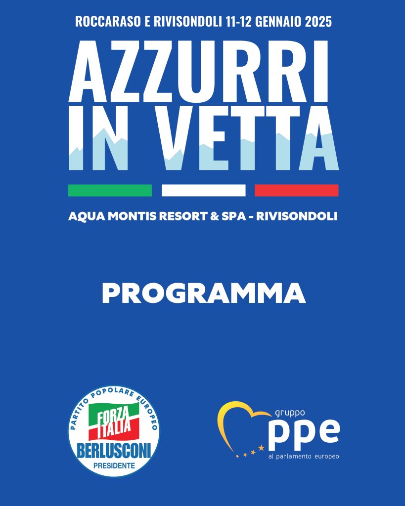 Fine settimana in vetta per Forza Italia che, da sabato 11 a domenica 12, si ritroverà a Roccaraso per una due giorni di incontri e dibattiti che, nella mattinata di domenica 12 gennaio, sarà conclusa dall’intervento del Coordinatore Nazionale Antonio Tajani. Particolarmente ricco il programma della manifestazione che avrà alcuni momenti dedicati al territorio dell’Abruzzo con due incontri dedicati al valore della montagna ed alla capacità di attrarre turismo dei piccoli borghi.
