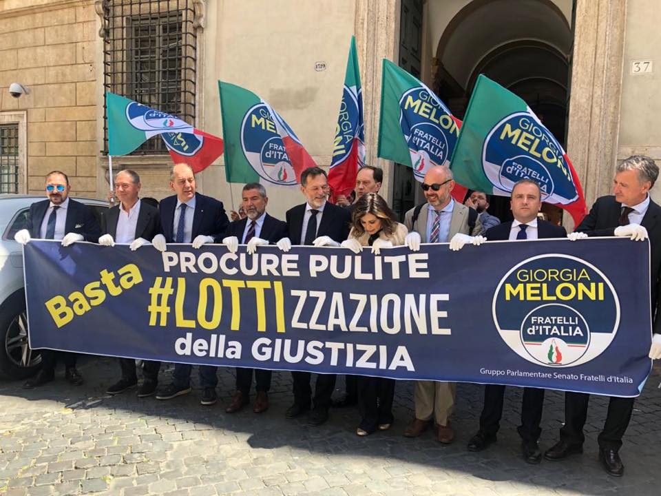 “Questa mattina in guanti bianchi al Senato per dire basta alla LOTTIzzazione della Giustizia e che vogliamo Procure pulite.” E’ quanto scrive il senatore di FDI Antonio Iannone, a margine della manifestazione che questa mattina gli esponenti del partito di Giorgia Meloni hanno tenuto nei pressi di Palazzo Madama.