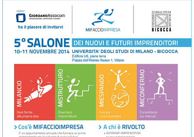 C’è anche lo Studio di Consulenza Giordano Associati nella quinta edizione di MIFACCIOIMPRESA, salone dei nuovi e dei futuri imprenditori italiani, in programma a Milano dal 10 all’11 Novembre all’interno della sede dell’Università Bicocca di Milano.