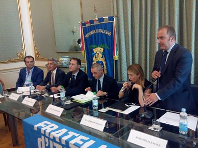 IN SALA – All’incontro di presentazione della lista di Fratelli d’Italia – Alleanza Nazionale per le provinciali, a Palazzo Sant’Agostino sono intervenuti, tra gli altri, il presidente regionale di FdI-AN, Antonio Iannone, il deputato Edmondo Cirielli, l’assessore regionale Giovanni Romano. Parole di apprezzamento da parte della Meloni proprio nei confronti di quest’ultimo. «E’ difficile – ha detto – riscontrare nei confronti dei politici un entusiasmo così vivo e sentito da parte della gente. Giovanni Romano ha fatto un ottimo
