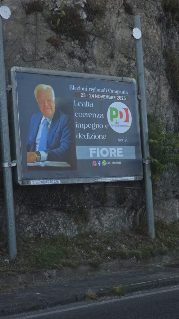 Non c’è, almeno fino ad oggi, un manifesto elettorale dei candidati al Consiglio Regionale del Partito Democratico in Provincia di Salerno con il nome del candidato Presidente Roberto Fico. L’ultimo, in ordine di tempo, è quello di Nello Fiore, candidato del Pd, che sul manifesto, affisso proprio in queste ore, accanto alla sua foto, allo slogan ed al simbolo del Partito Democratico, ha “dimenticato” di menzionare il nome del candidato Presidente Roberto Fico. Una semplice distrazione o, invece, una chiara strategia di comunicazione in vista delle prossime elezioni del 23 e del 24 Novembre in Campania ?