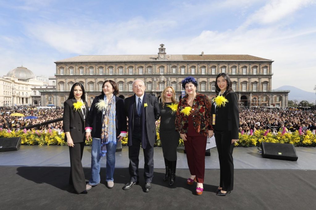 De Luca, in Piazza Plebiscito, questa mattina, a Napoli, con un parterre di artiste – tra cui Anna Tatangelo e Marisa Laurito – per celebrare, anche se con un giorno di anticipo, l’8 Marzo ed è subito polemica. A rivolgere un pesante attacco al Presidente della Regione è il Consigliere Regionale di Fratelli d’Italia Raffaele Pisacane.