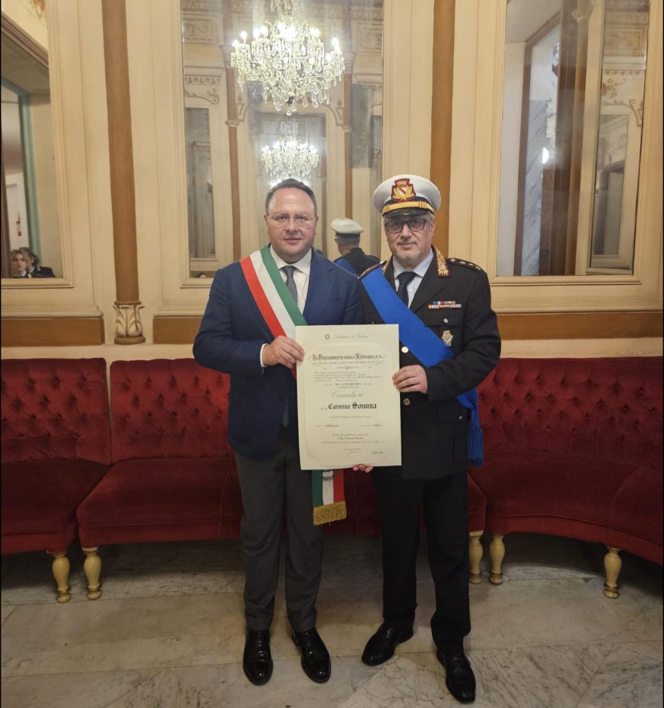 “Stamattina, nell’ambito delle celebrazioni tenutesi in Piazza Amendola a Salerno per il il 78° anniversario della nascita della Repubblica, il Prefetto di Salerno Francesco Esposito ha conferito due onorificenze al merito a due nostri concittadini: il dottor Mario Sposito, insignito quale Ufficiale al Merito della Repubblica Italiana e il nostro Comandante della Polizia Municipale Carmine Somma, insignito quale Cavaliere al Merito della Repubblica Italiana.”