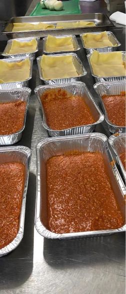 Il pranzo donato è stato elaborato nel rispetto delle tradizioni locali, lasagna al ragù, pollo al forno con patate profumate e panettone.