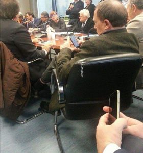 Sta facendo il giro del web la foto dell’assessore regionale all’ambiente Fulvio Bonavitacola che, mentre si svolge l’audizione dei sindaci della Piana del Sele in Commissione Ambiente, è impegnato con il suo smartphone. Numerosi gli attacchi a cominciare da quello dell’assessore comunale di Battipaglia Michele Gioia.