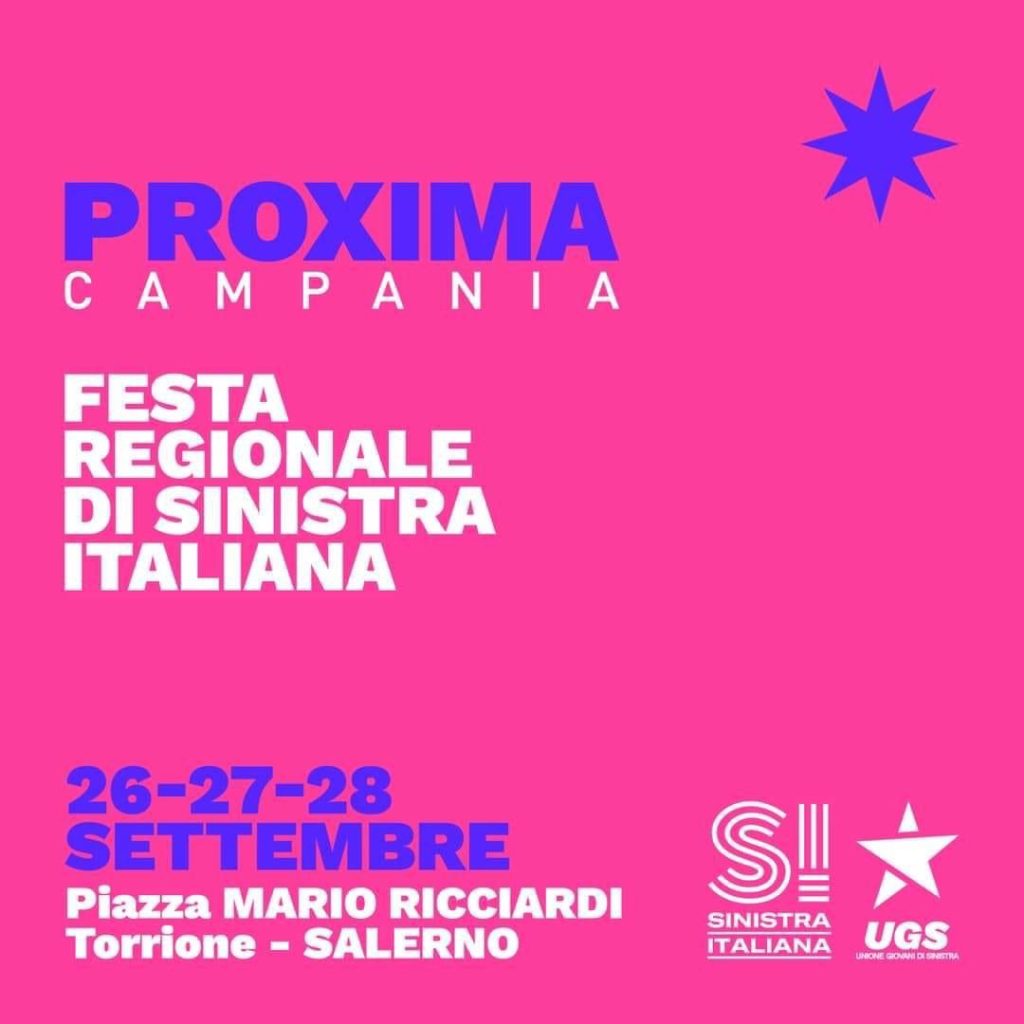 Sinistra Italiana arriva a Salerno, per la tappa campana della Festa Nazionale, con Proxima, l’evento politico in programma nel Comune capoluogo dal 26 al 28 Settembre, nella piazza considerata la sede storica della Sinistra, Piazza Mario Ricciardi, nella zona di Torrione. Ad aprire i lavori, nella serata del 26, sarà il padrone di casa, il parlamentare salernitano di Alleanza Verdi Sinistra Franco Mari mentre la chiusura vedrà la partecipazione del Segretario Nazionale di Sinistra Italiana Nicola Fratoianni.