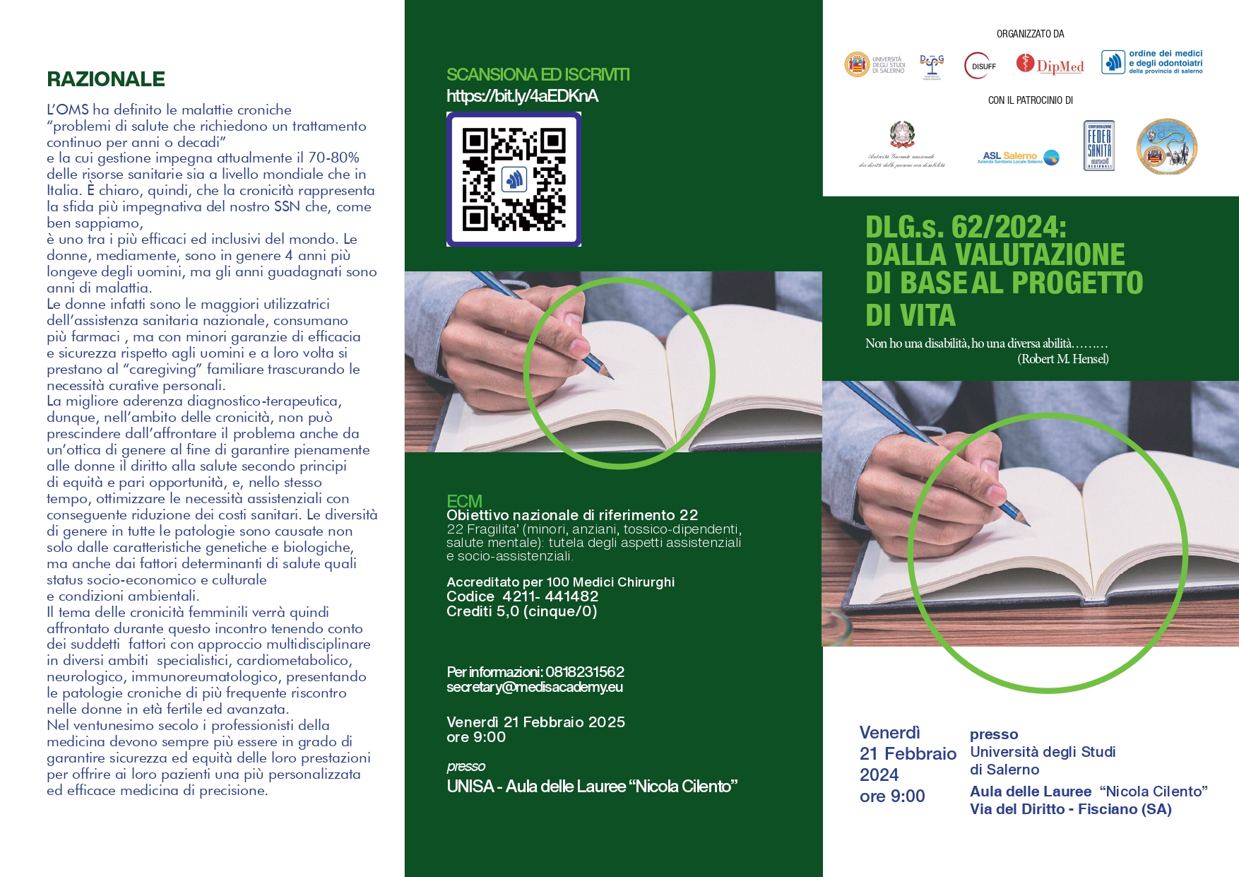 Il Dipartimento di Scienze Giuridiche di Unisa è tra gli organizzatori dell’importante evento, in programma venerdi’ 21 Febbraio, all’interno dell’Aula Cilento, per un confronto sui temi della nuova normativa che disciplina il settore della Disabilità,Salerno oltre a Brescia, Catanzaro, Firenze, Forlì-Cesena, Frosinone, Perugia, Sassari e Trieste sono le nove province, concordate dal Ministero delle disabilità con il Ministero della Salute e il Ministero del Lavoro e delle Politiche sociali, nelle quali è partita da gennaio scorso la sperimentazione del nuovo sistema previsto dal decreto legislativo n. 62 del 2024 che semplifica il sistema di accertamento dell’invalidità civile e introduce il “Progetto di vita”.