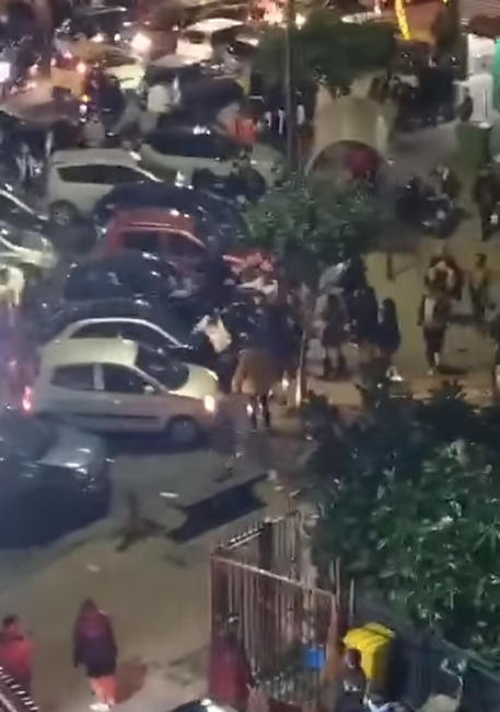 Dalle immagini si notano ragazzi che, in spregio alle regole anti assembramento, si rincorrono e si azzuffano tra motorini in corsa e auto in sosta fino all’arrivo delle forze dell’ordine.