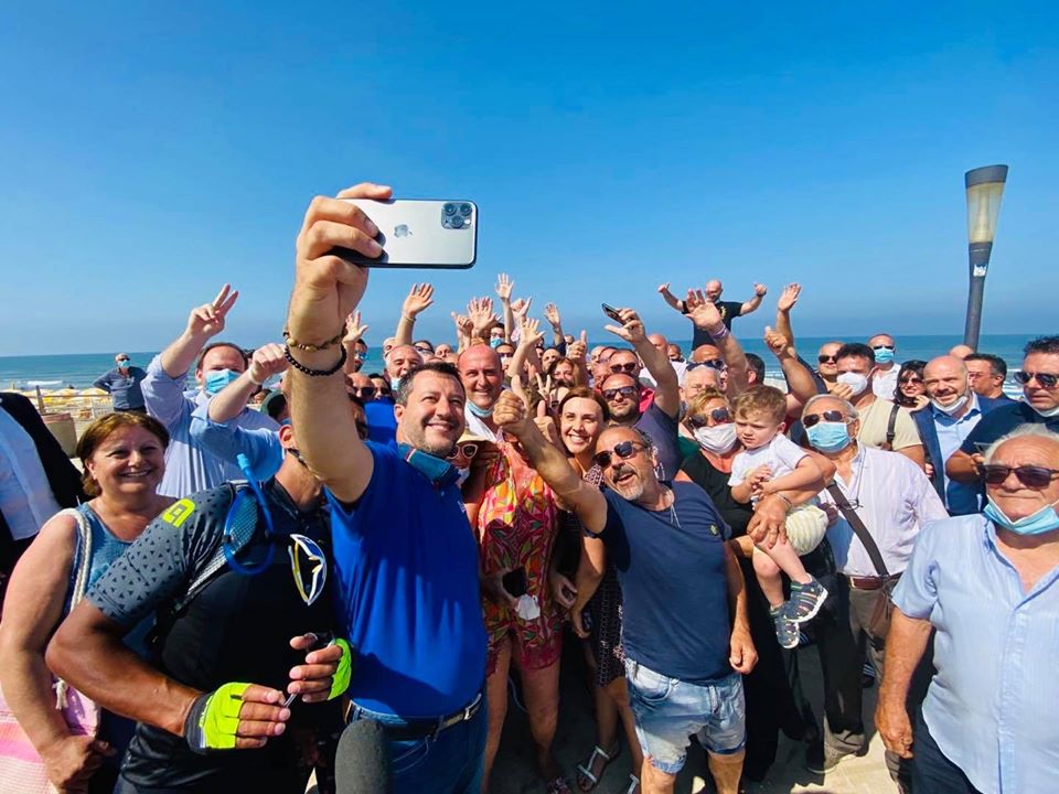 Salvini, dopo la sua presenza a Mondragone, in giornata sarà a Terracina, in Provincia di Latina, uno dei comuni chiamati al voto per le prossime elezioni comunali.