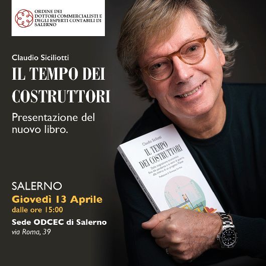 Un incoraggiamento al civismo e all’impegno sociale dei “costruttori”, ossia ai leader che sanno guardare lontano e sacrificare l’interesse proprio per quello altrui, se superiore, perché si possa davvero costruire in Italia un progetto Paese, sostenibile e in grado di dare risposta alle esigenze delle giovani generazioni: è questa l’essenza de “Il Tempo dei costruttori” il nuovo libro di Claudio Siciliotti, commercialista ed economista, già presidente nazionale dei commercialisti, che sarà presentato domani, giovedì 13 aprile, alle ore 15 presso la sede in via Roma dell’Ordine dei Dottori Commercialisti ed Esperti Contabili (ODCEC) di Salerno.