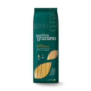 L’antica ricetta della pasta Graziano è onorata seguendo scrupolosamente il metodo di lavorazione degli storici artigiani di Gragnano, che prevede la trafilatura al bronzo e la lenta essiccazione statica su telai