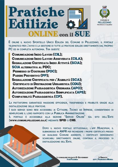 Il commento del Sindaco Dott.Francesco Morra: “Con l’attivazione dello Sportello Unico Edilizia, facciamo un altro passo verso l’obiettivo che ci siamo fissati sin dall’inizio del nostro mandato, ossia digitalizzare la macchina amministrativa ed agevolare i Cittadini. Ricordo che dallo scorso novembre, è possibile scaricare comodamente da casa già tutti i certificati rilasciati dai servizi demografici”.