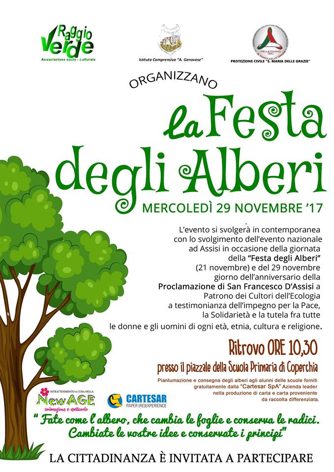 Si terrà domani 29 novembre ’17, nel giorno in cui ricorre l’anniversario della Proclamazione di San Francesco d’Assisi a Patrono dei Cultori dell’Ecologia, la Prima Edizione della Festa degli Alberi di Pellezzano. Organizzata dall’Associazione Socio – Culturale “Raggio Verde”, dalla Protezione Civile “S. Maria delle Grazie” e dall’Istituto Comprensivo “A. Genovese”.