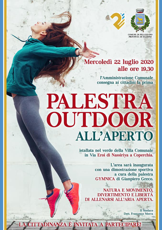 Domani sera, alle ore 19.30 l’Amministrazione Comunale di Pellezzano, guidata dal Sindaco dott. Francesco Morra, consegnerà ai cittadini la prima “Palestra Outdoor” all’Aperto installata nel verde della Villa Comunale in via Eroi di Nassiriya alla frazione Coperchia.