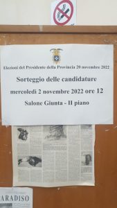 Ribaltando le appartenenze politiche e partitiche, il sorteggio che, questa mattina, a Palazzo Sant’Agostino, ha stabilito la posizione sulla scheda elettorale del 20 Novembre prossimo, ha invertito la naturale collocazione politica dei due candidati alla Presidenza della Provincia: gli elettori, infatti, troveranno il nome di Franco Alfieri a destra, quello di Sonia Alfano a sinistra. Al sorteggio che si è tenuto negli uffici della Provincia di Salerno erano presenti per il centro destra il Consigliere Provinciale Giuseppe Ruberto, per il centro sinistra Giovanni Coscia e Nicola Landolfi.