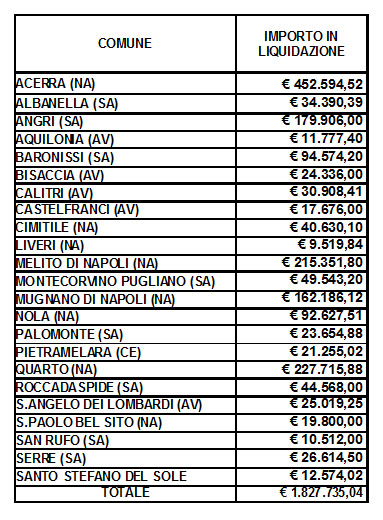 In allegato l’elenco dei Comuni per i quali sono stati predisposti i decreti di liquidazione.