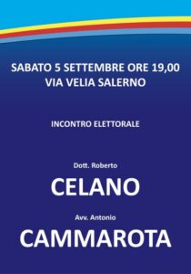 Domani, sabato 5 settembre, dalle ore 18,00 alle ore 20,00, in via Velia di Salerno, incrocio Corso Garibaldi, si terrà un incontro elettorale con allestimento di gazebo organizzato dall’associazione La Nostra Libertà, gruppo consiliare al Comune di Salerno, nel quale verranno illustrate le iniziative e le proposte per la città.
