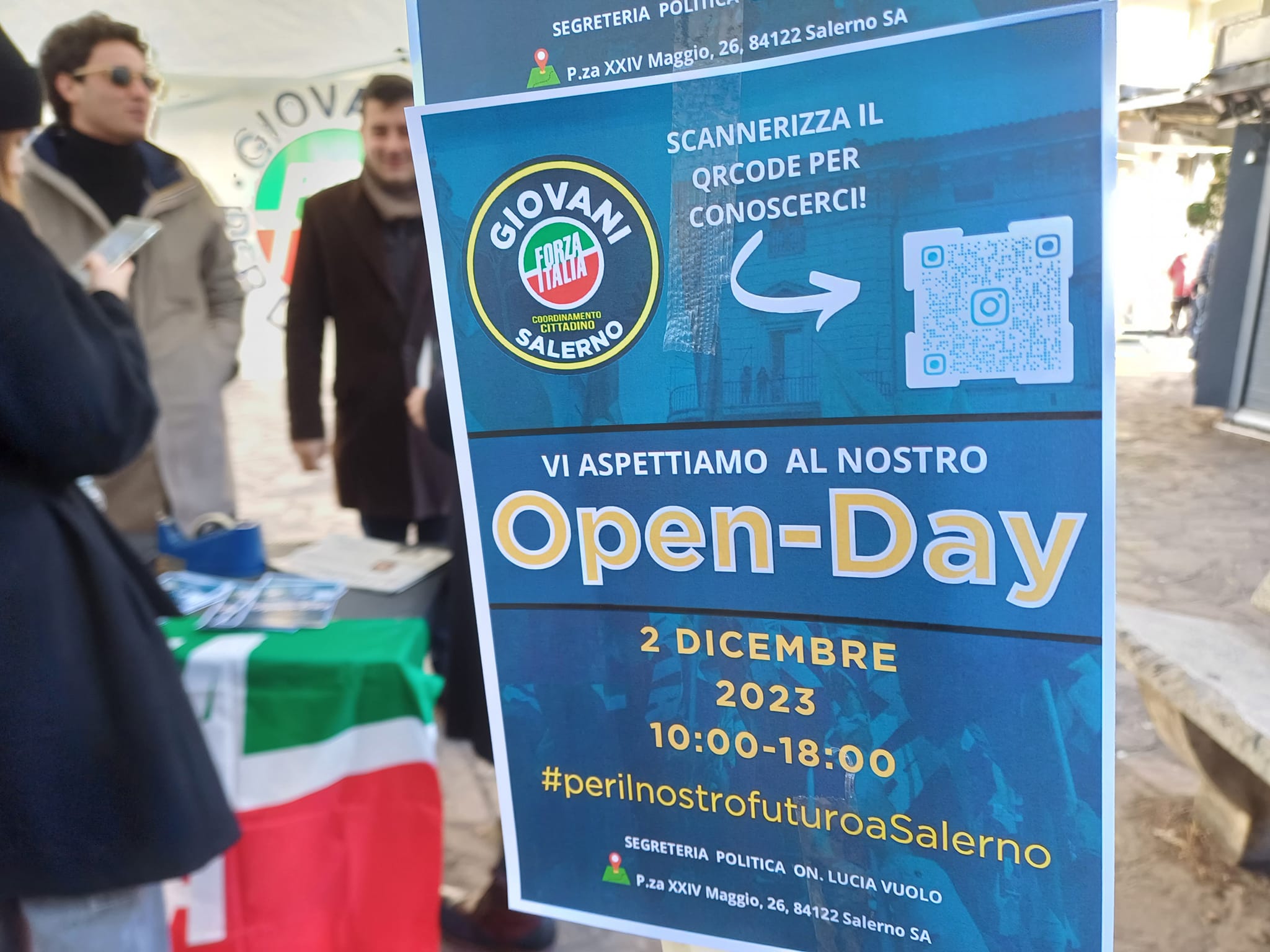 I Giovani di Forza Italia, domenica mattina, a Salerno, nella Zona Orientale, hanno allestito un gazebo per illustrare ai cittadini del Comune capoluogo, le tante iniziative portate avanti negli ultimi mesi. Un appuntamento in Piazza prima dell’Open Day in programma per il prossimo 2 Dicembre, sempre a Salerno.