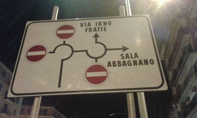 Questo segnale stradale è un capolavoro. Ed è l’emblema del caos assoluta che regna del sistema di viabilità del Comune di Salerno dove si naviga a vista, si vive alla giornata, a causa dell’assoluta mancanza di una serie programmazione. Sensi e divieti che cambiano in continuazione e, poi, l’emergenza parcheggi che, in queste giornate di caccia allo shopping, sarà ancora piu’ evidente. Insomma, il manico non è buono. C’è poco da dire.