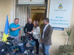 E’ stata l’assessore alle Politiche Sociali del Comune di Salerno Paola de Roberto, insieme al consigliere comunale Fabio Polverino, ad accogliere Mykola, il ciclista ucraino della Pace, l’uomo che dal 1 Agosto, partendo da Udine, sta attraversando l’Italia per chiedere che la guerra finisca.