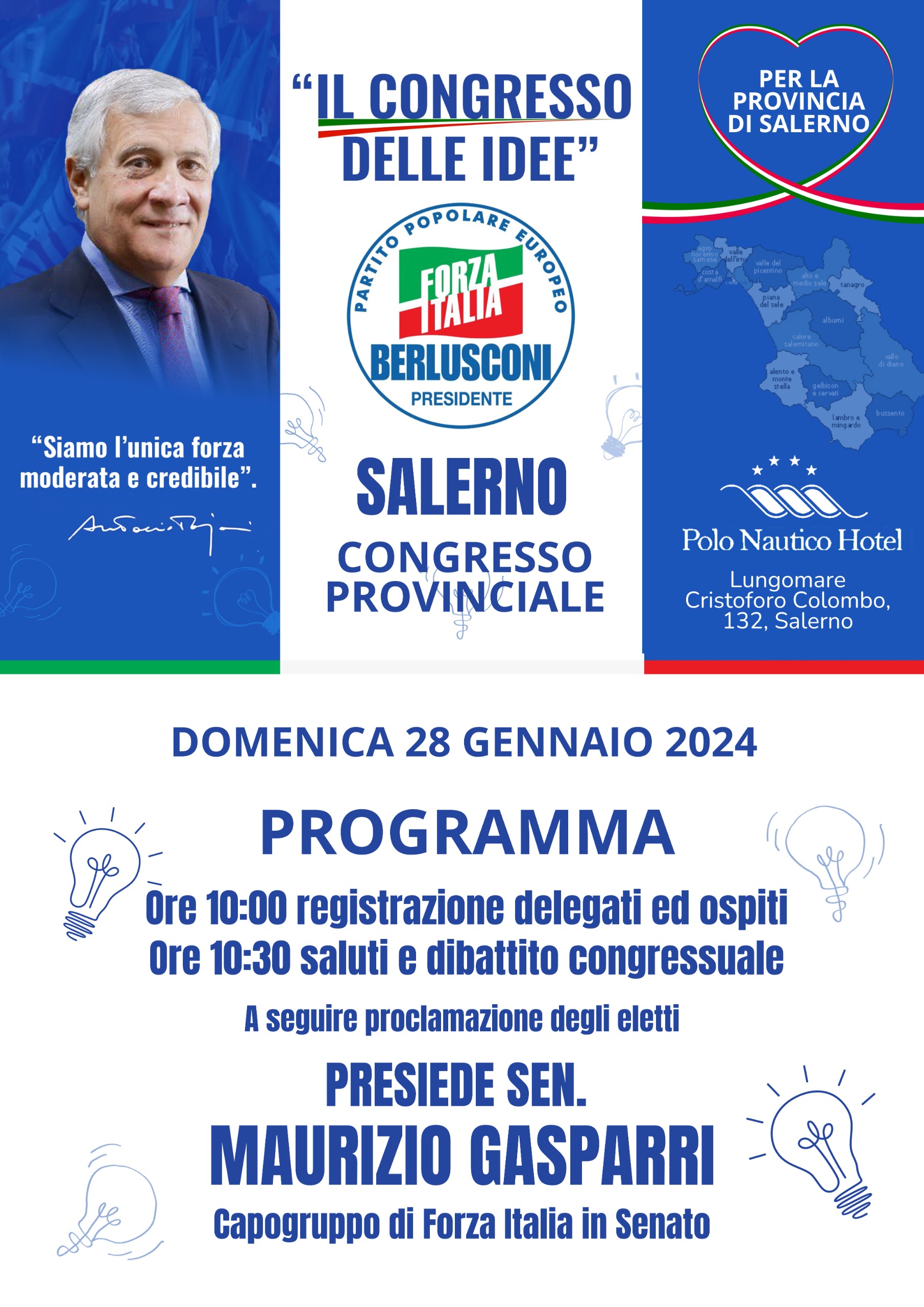 SALERNO. TUTTO PRONTO PER IL CONGRESSO PROVINCIALE DI FORZA ITALIA