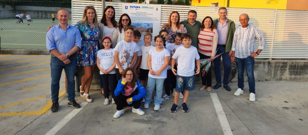 “Oggi l’amministrazione comunale insieme ai bambini, alla Preside Augusto, alla ditta Edil De. Lo.Ro. hanno simbolicamente, con lo scoprimento del cartello di cantiere, dato inizio ai lavori riguardanti la mensa scolastica.