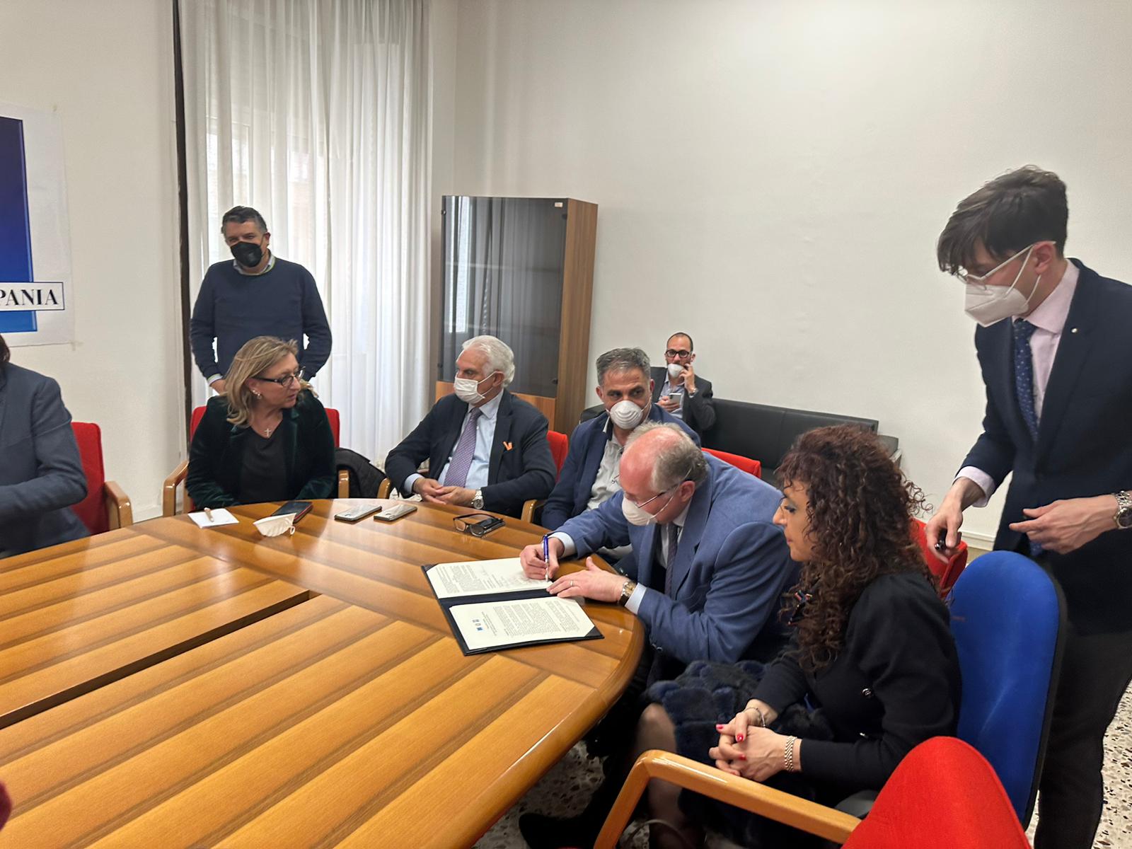Firmato, questo pomeriggio, il Protocollo d’intesa tra la Regione Campania e i tredici Comuni individuati come area target per la realizzazione di Programmi Integrati di Valorizzazione (PIV), definiti Masterplan, per il rilancio dello sviluppo socio/economico della Valle del Sarno.