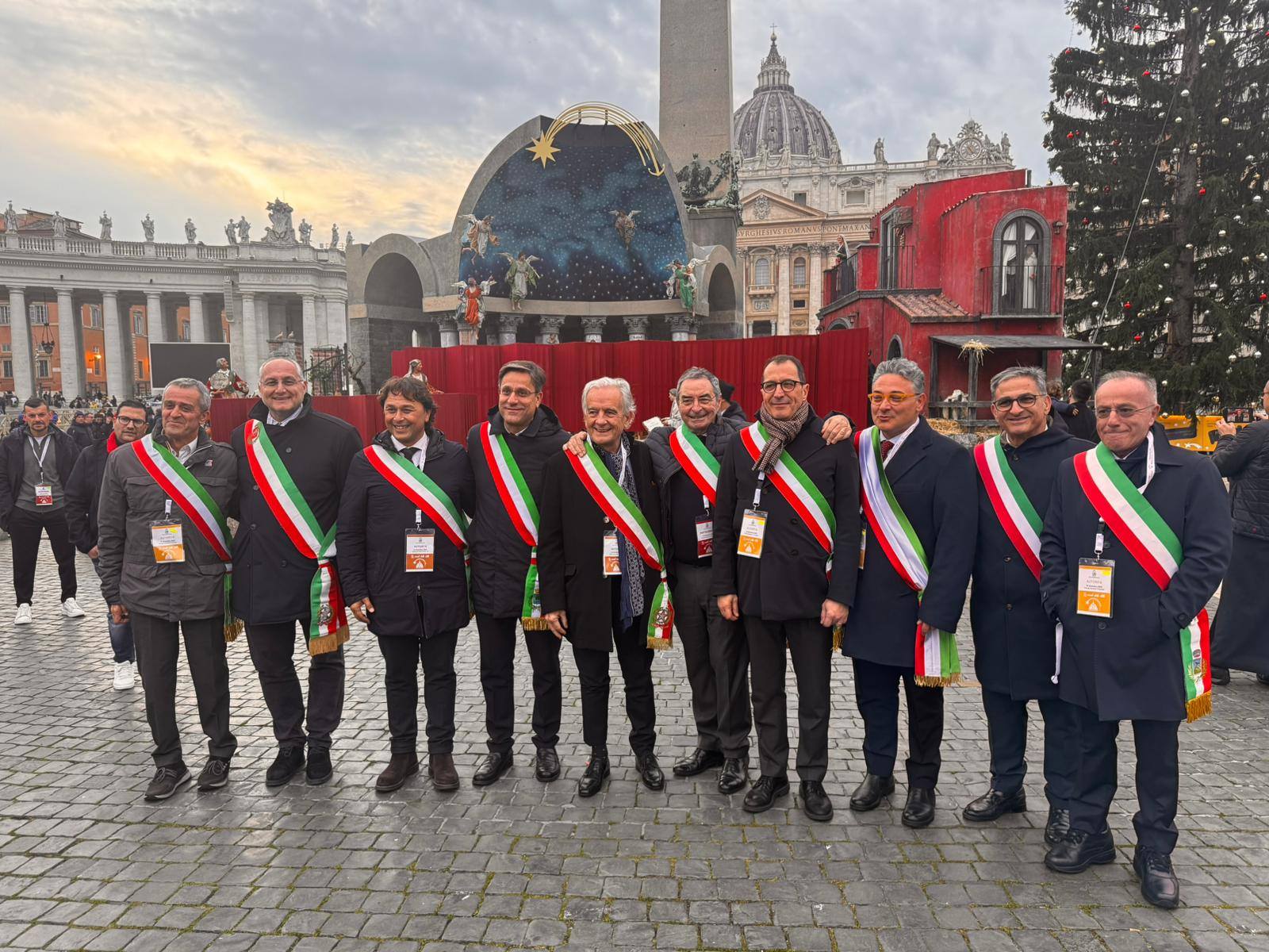 E’ stata una giornata particolare per tanti Sindaco dell’Agro che, ieri, a Roma, hanno partecipato alla cerimonia di scoprimento, a Piazza San Pietro, alla presenza del Santo Padre, del Presepe offerto dalla Diocesi Nocera Sarno. Tra i partecipanti all’evento Michele Strianese (San Valentino Torio), Paolo De Maio (Nocera Inferiore), Gennaro D’Acunzi (Nocera Superiore), Francesco Squillante (Sarno) Lello De Prisco (Pagani), Antonio Pagano (Roccapiemonte).
